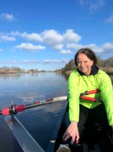 ‘Vroeger tenniste ik fanatiek, sinds een paar jaar roei ik veel – in een meermansboot of in een skiff. Je zit dan zo dicht op het water, alsof je er één mee bent.