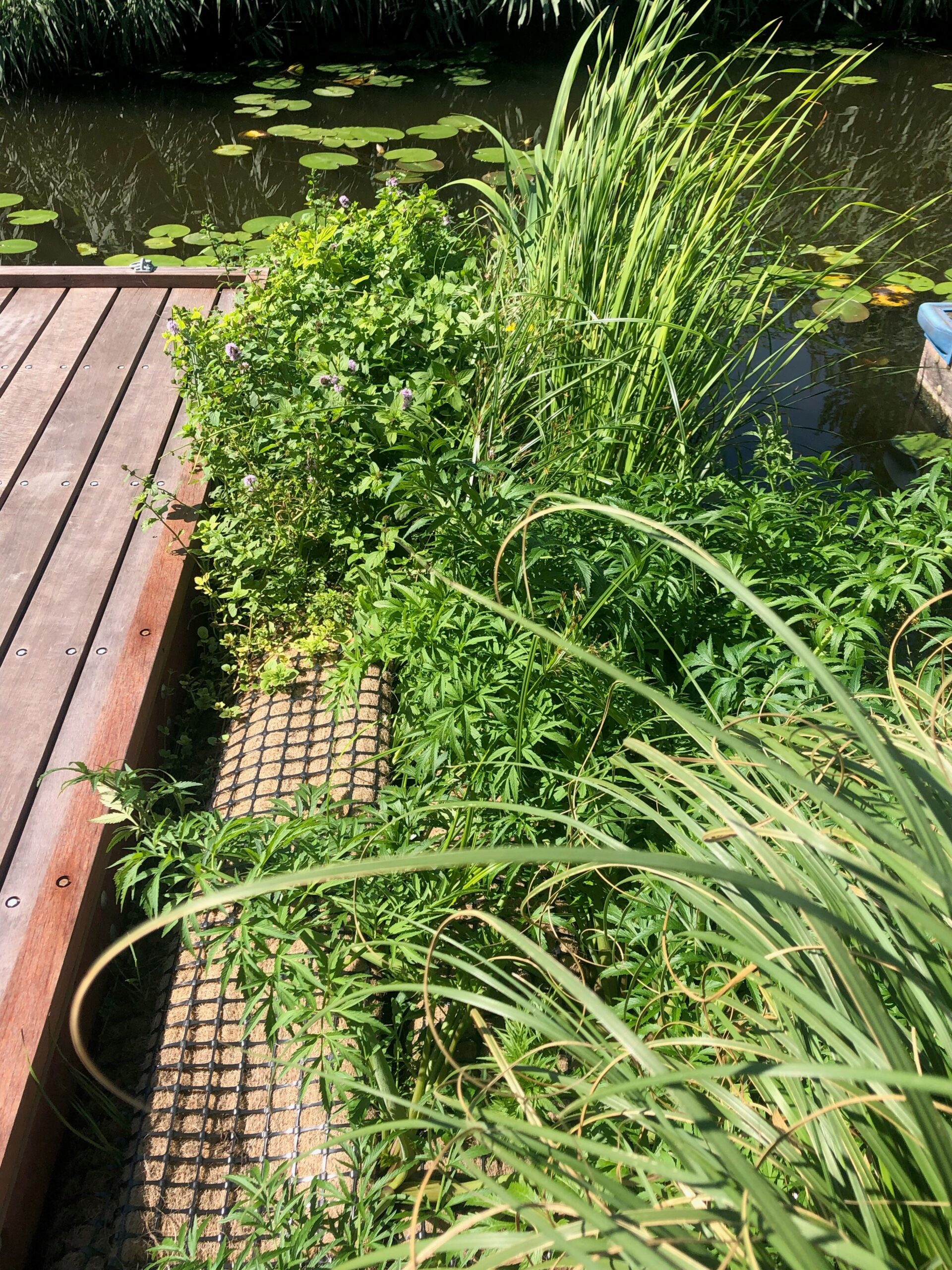 ‘De toepassingen zijn breed. Denk aan drijvende plantenbakken, broednesten voor watervogels of een drijvende schutting die zorgt voor privacy én natuur rond je boot. Een drijvende tuin is ook handig als je last hebt van watervogels op je terras – je geef ze hun eigen plek op een eilandje iets verderop.’