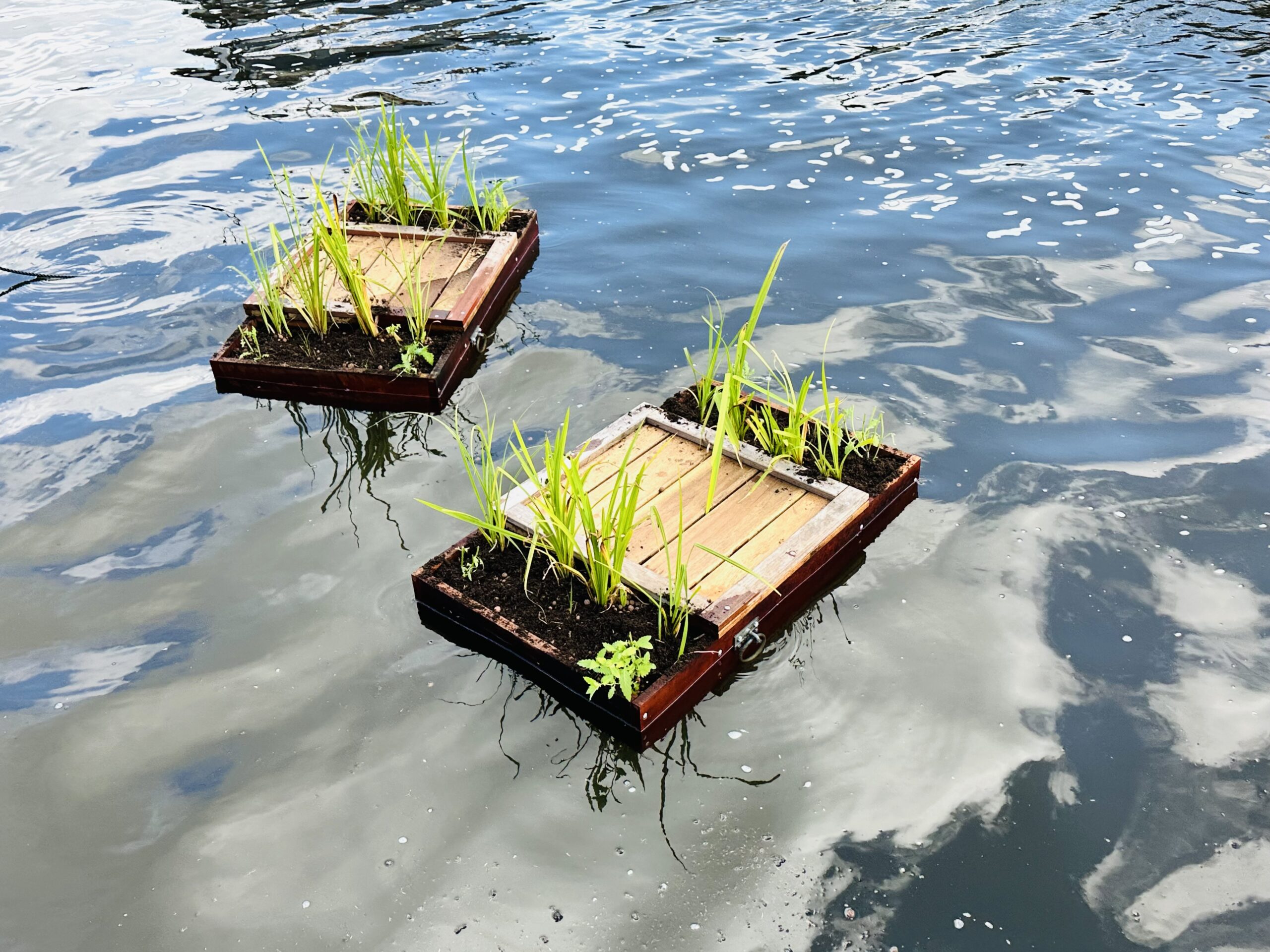 Drijvende tuinen zijn een slimme én duurzame manier om groen toe te voegen aan het water rondom je schip of ark. Zelfs een klein drijvend eilandje doet al veel goeds. Vogels, vissen, libellen, bijen en andere dieren maken dankbaar gebruik van de schuil- en broedplekjes die je ermee biedt. De waterkwaliteit krijgt een natuurlijke oppepper door het drijvende groen. Boven op zo’n eiland groeien kleurrijke bloemen en stevige oeverplanten. Ondertussen doen de wortels onder water hun werk: ze zuiveren het water, voegen zuurstof toe en bieden veilige plekken aan kleine vissen – goed voor de visstand – en andere waterdieren.