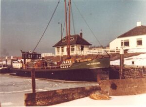 In 1928 verliet ze de werf als kaasschip: een motorvrachtschip van net geen 25 meter, gebouwd voor het vervoer van kaas. Strak gelijnd, functioneel, klaar voor het grote werk. Maar het was in 1935, toen Arie Boon van Vlieland haar in de vaart nam voor het familie-transportbedrijf, dat haar echte leven begon. Vanaf dat moment was de Twee Gebroeders – verwijzend naar de broers Cor en Lammert, Aries zoons – hét schip waarmee vrijwel alles het eiland bereikte. Levensmiddelen, brandstof, bouwmaterialen en zo nu en dan een verhuisboedel: het kwam allemaal aan boord. In Harlingen werd geladen, in de Oude Haven van Vlieland werd gelost, recht tegenover het witte huis. Generaties eilanders hebben het schip daar zien binnenlopen en weer zien vertrekken.