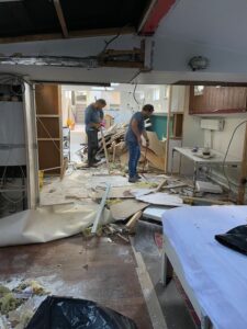 ‘De reis naar jezelf is een studie op zich,’ legt ze uit. ‘Je verzamelt tools om hindernissen te herkennen en te overwinnen.’ Dat soort wijsheden kwamen ook goed van pas tijdens de verbouwing. Omdat ze de woonboot zonder makelaar kocht, gold het principe: what you see is what you get.‘Ik wilde eigenlijk helemaal niet echt verbouwen. Even vier kleine kamertjes samenvoegen tot één slaapkamer, een simpele ingreep, dacht ik nog.’ Maar dat liep anders. Want toen zoon Rik en schoonzoon Jan begonnen met slopen, kwam de waarheid tevoorschijn: schimmel, vocht, verrot hout. ‘We hadden geen keus, we moesten alles tot op het skelet afbreken en vanaf daar opnieuw beginnen. En dan goed: met dubbele beglazing, goede isolatie en duurzame oplossingen. Gelukkig was het staal in perfecte staat – ik had een meetbrief – anders had ik de boot nooit gekocht.’