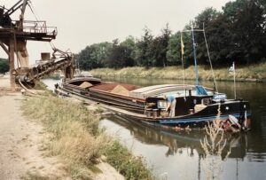 ‘Wonen op het water vond ik op den duur niet meer genoeg. Ik wilde varen, dat maakte mijn gevoel van vrijheid nog sterker. Ik kocht de Jason, een kempenaar van 50 meter, en voer er vijf jaar lang mee als vrachtschipper. Dat ging niet meteen heel soepel. In het begin verkeek ik me op de grote massa van zo’n schip en veroorzaakte ik soms wat schade. Toch kwam het altijd weer goed.’