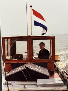 ‘Ik werd lid van de waterscouting en groeide door tot in de leiding. Toen we een varend clubhuis wilden, heb ik mijn groot vaarbewijs gehaald. We kochten een wachtschip van 30 meter – ik heb er veel tijd en energie in gestoken om ‘m te verbouwen. Daarna voeren we ermee naar plekken waar de waterscouting op kamp was.’