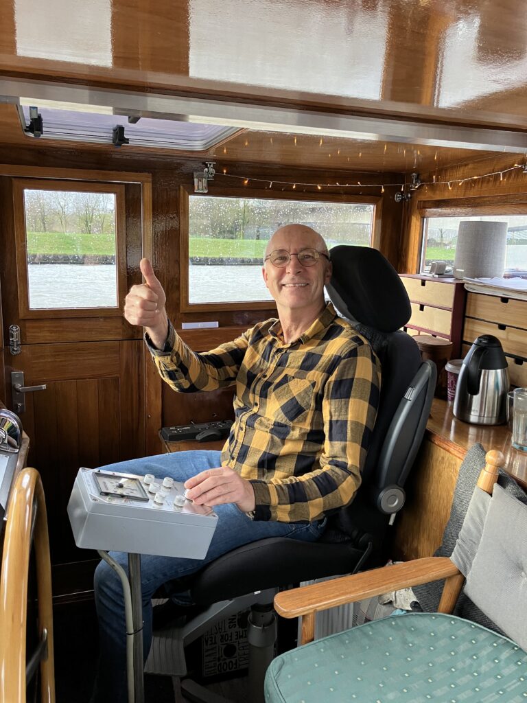 ‘Jurjen vaart fulltime met de Zapata, een kempenaar van 50 meter, om grondstoffen naar een betoncentrale te brengen. Ik ga regelmatig met hem mee. Er zijn vaak stremmingen van vaarwegen, dan is het handig dat ik hem ondersteun; ik heb de papieren. Dus helemaal droogstaan doe ik niet.’